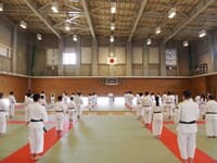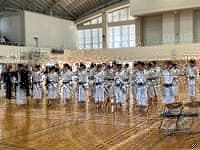 朝から雪の舞う中、県下からから、中学、高校、大学少林寺拳法部員、教職員支部員、一般財団法人少林寺拳法連盟個人会員(未就学児を含む少年部、中学生、一般拳士)、約60名の拳士が集まり、恒例のトレーニング、基本修練、法形修練、3月の全国高校選抜大会に向けた演武修練に熱心に取り組んでいました。