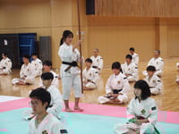 午前中は地元指導員による基本修練、講義、午後からは開祖法話学習、ディスカッション、コース及び資格別に分かれての技術修練が行われ、受講者は熱心にまた楽しく取り組んでいました。