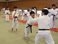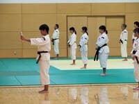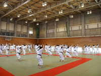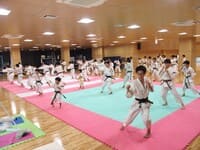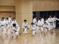 県下から多くの拳士、指導者が集まり、小中高生と合わせて80名超の大所帯の練習会となり、午前中のトレーニング、基本修練、午後からの法形・演武修練にしっかり汗を流しました。