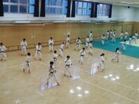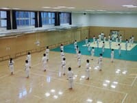 県下からから、中学、高校、大学少林寺拳法部員、教職員支部員、一般財団法人少林寺拳法連盟個人会員(未就学児を含む少年部、中学生、一般拳士)、約60名の拳士が集まり、恒例のトレーニング、基本修練、法形修練、来月の中学生秋季大会、高校新人大会に向けた演武修練に熱心に取り組んでいました。