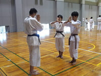午前中は派遣教員の松久先生や地元指導員による講義、基本修練、午後からはコース及び資格別に分かれての技術修練が行われ、受講者は残暑に負けず熱心に取り組んでいました。