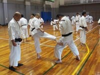 午前中は地元指導員による基本修練、講義、午後からは開祖法話学習、ディスカッション、コース及び資格別に分かれての技術修練が行われ、受講者は熱心にまた楽しく取り組んでいました。