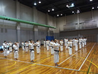 UNITY広島武専では、県下より集まった多くの拳士が午前中の師家講話視聴、資格別講義、午後からの基本、法形修練に汗を流していました。